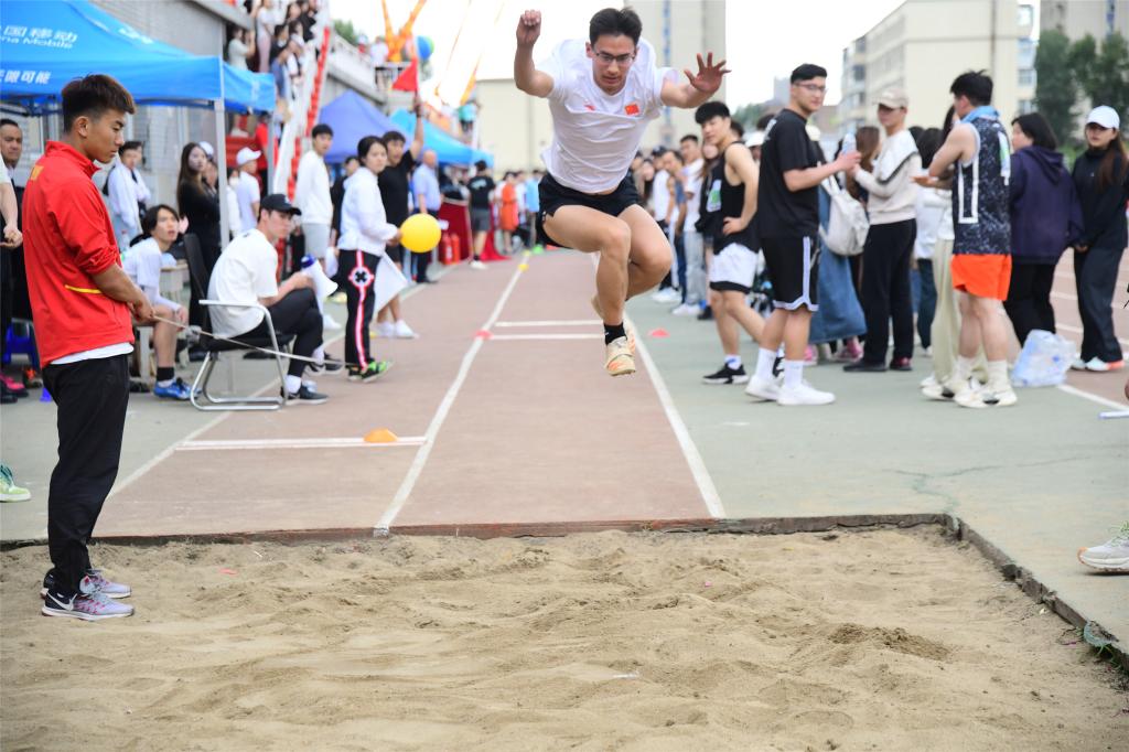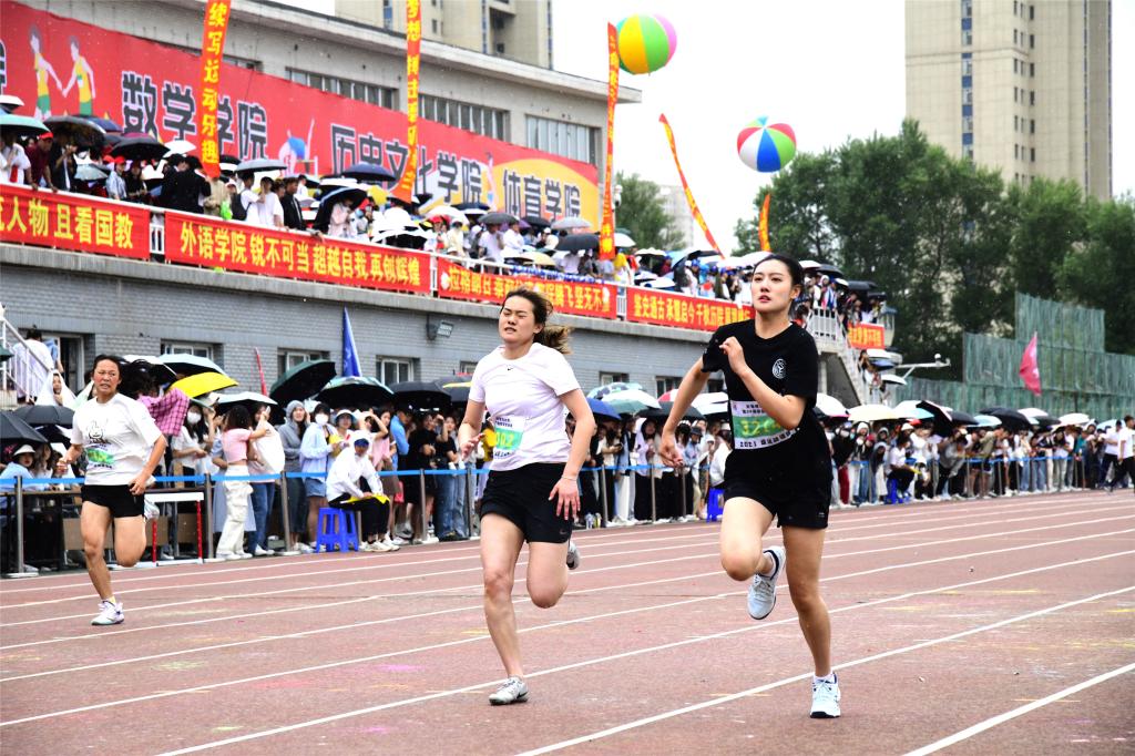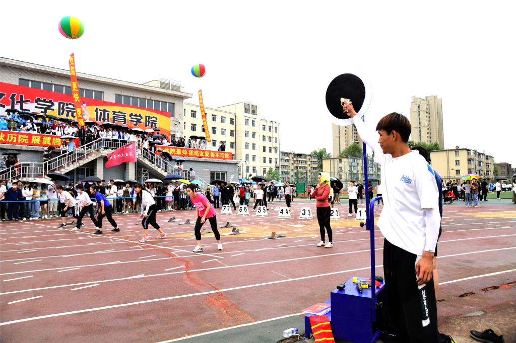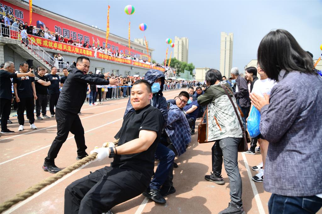 “加油!加油!加油!”伴随着一声清脆的发令枪,田赛、径赛的决赛项目正式拉开序幕,整个田径场锣鼓喧天,呐喊助威声此起彼伏。别出心裁的教职工趣味运动项目在西侧足球场火热进行,老师们踊跃参加着投壶、抢收抢种、前呼后拥、毛毛虫竞速、扔沙包等趣味活动,平时不苟言笑、严谨认真的他们仿佛找回了青春记忆,肆意的挥洒汗水,享受此刻运动带来的快乐。