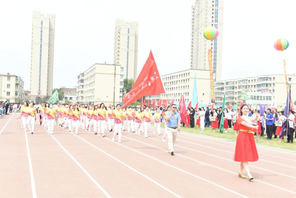 上午8:30,伴随着激昂奋进的《运动员进行曲》,国旗、校旗、运动会会旗护旗队迈着铿锵有力的步伐率先入场,经过主席台接受检阅,英姿飒爽,整齐划一;花束方队、刀旗方队、裁判员方队紧随其后,笑颜如花、精神抖擞;全校20个学生方队和23个教职工方队迈着整齐的步伐接受检阅,整齐的队伍、响亮的口号、五彩斑斓的服装,充满创意的特色展示彰显了我校师生锐意进取、蓬勃向上的精神风貌。