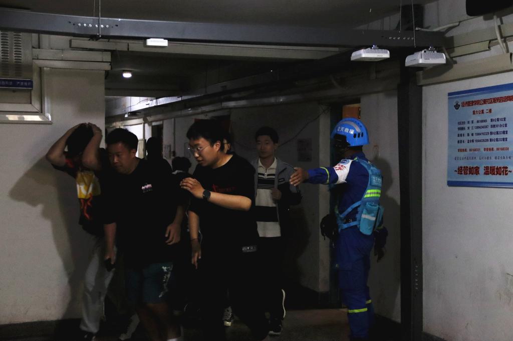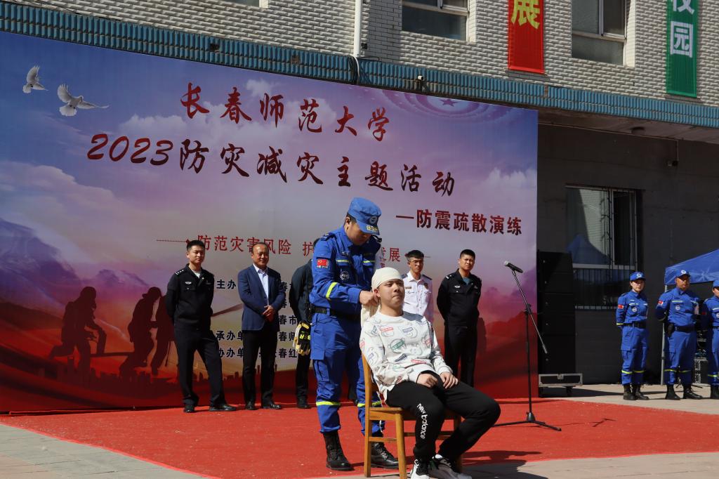 在轰鸣的警报声中,演练准时开始。在模拟地震逃生演练中,安全引导员迅速到达指定地点,对学生进行避震、逃生指导,确保学生顺利从寝室撤离到安全地点。消防救援官兵成功对被困学生展开救援,蓝天救援队人员对受伤学生进行现场救治包扎,并对急救常识进行示范讲解。二道区消防救援队对多种起火场景进行实地灭火演示,使在场师生对应急常识有了更深的了解和掌握。