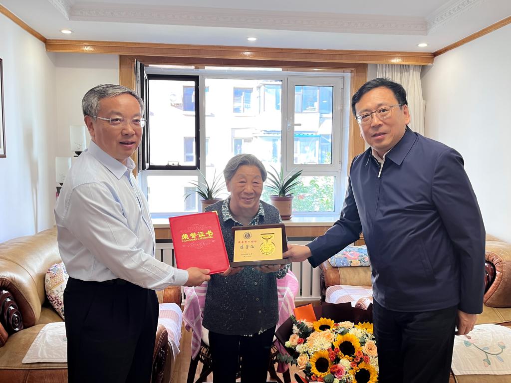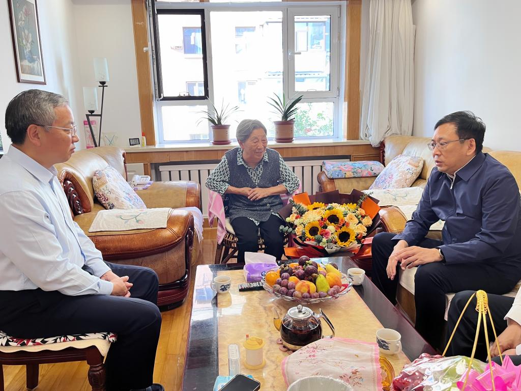 走进陈劳治简朴整洁的家,刘多亲切地与关玉兰交谈,希望她保重身体、健康长寿。关玉兰及家属深切回忆了陈劳治老师的事迹。