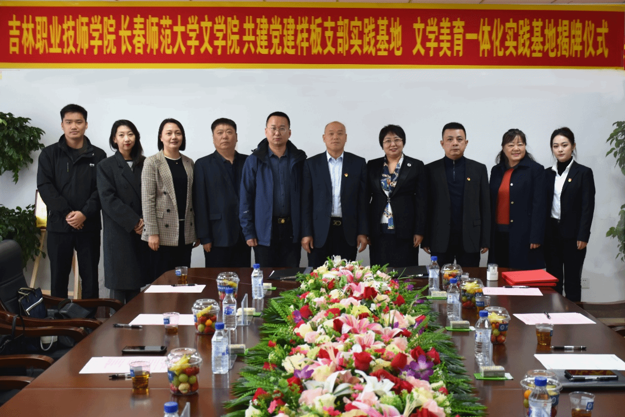3月14日,我校文学院与吉林职业技师学院共建“实习+就业”基地、“党建工作样板支部培育创建单位”实践基地、“文学美育一体化”实践基地的签约及授牌仪式在吉林职业技师学院圆满举行。