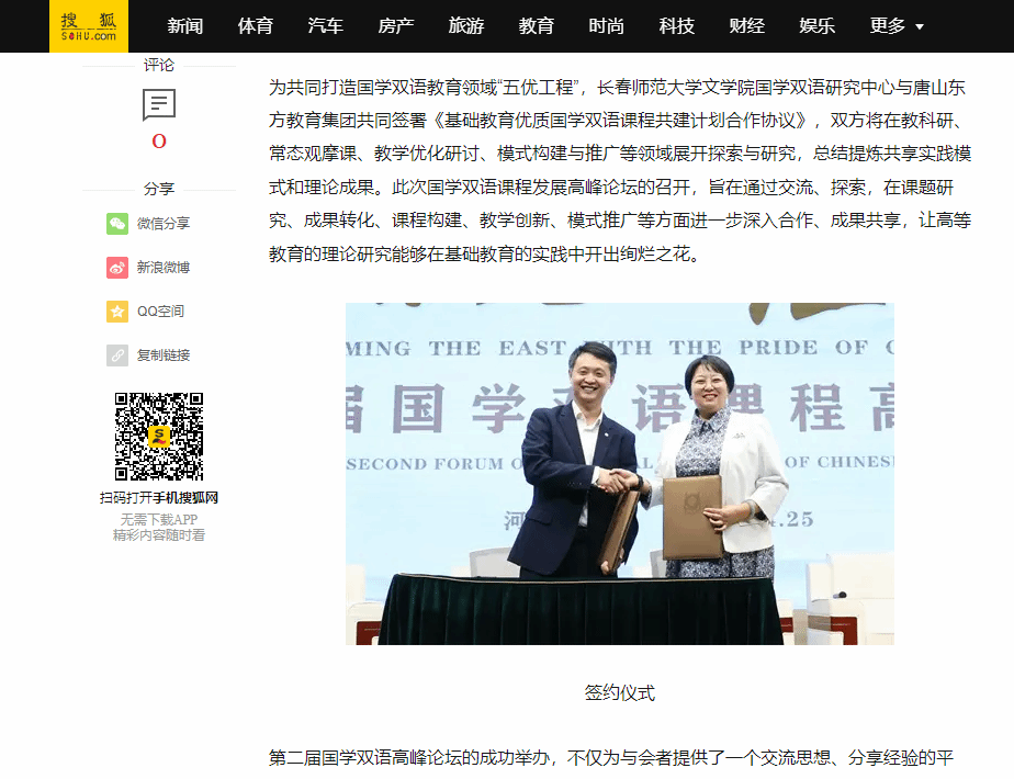 中国教育电视台光耀华夏、网易新闻、腾讯新闻、新浪新闻、搜狐新闻等多家媒体报道我校文学院与唐山东方教育集团签订课程共建合作协议