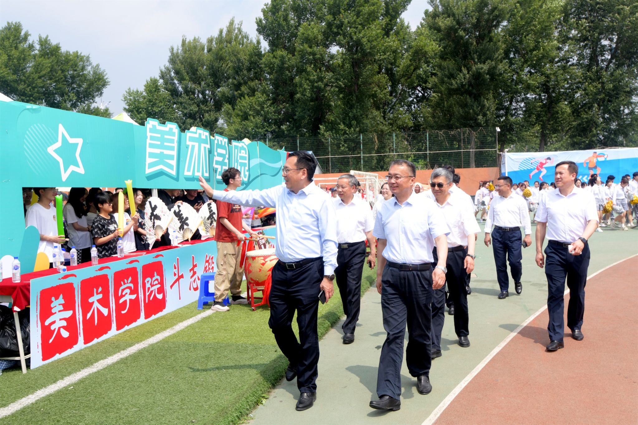 学校领导,各部门、各学院负责人在主席台观看比赛。