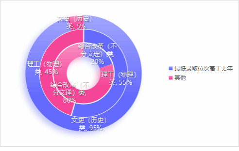 从位次上来看,学校普通类专业招生的29个省(自治区、直辖市)、49个不同批次不同科类中,有34个科类最低录取位次高于去年。其中理工(物理)类12个,文史(历史)类21个,综合改革(不分文理)类1个。