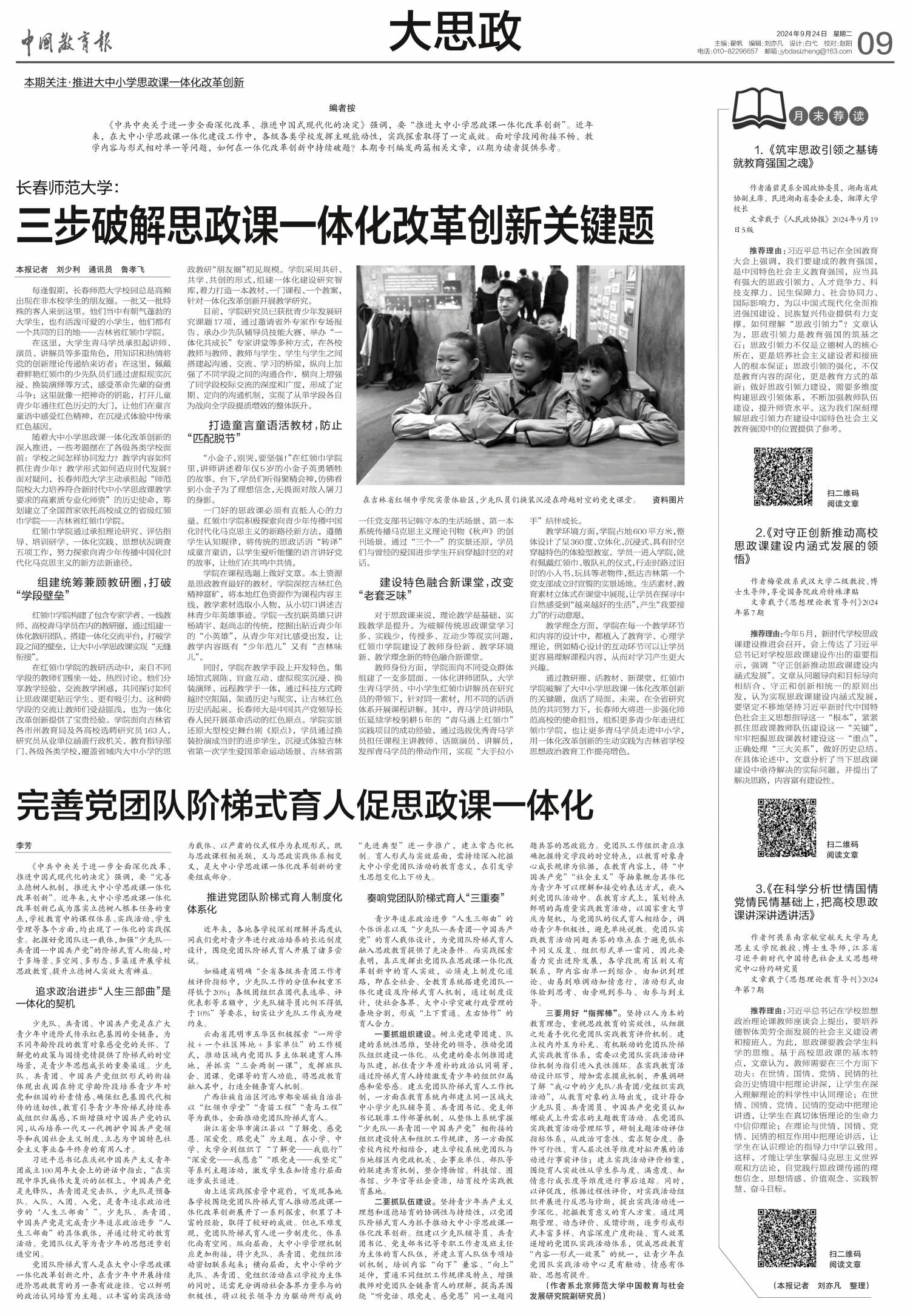 近日,中国教育报以《三步破解思政课一体化改革创新关键题为题,对我校红领巾学院进行专题报道。