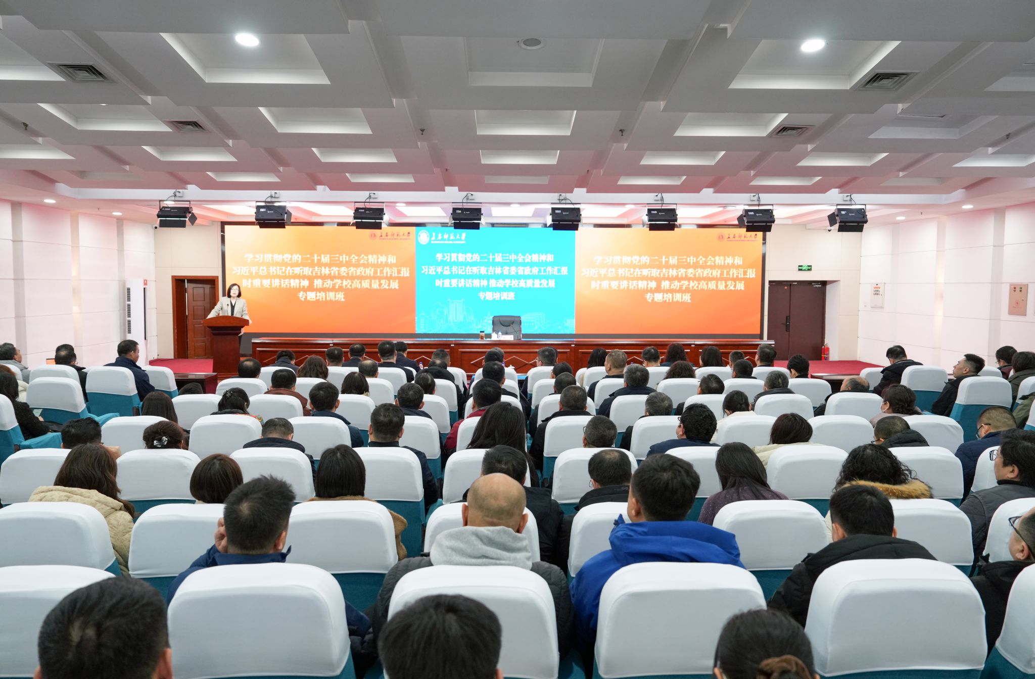 为深入学习贯彻党的二十届三中全会精神,认真学习贯彻落 实习近平总书记在听取吉林省委和省政府工作汇报时的重要讲话精神,不断引导干部树立正确的权力观、政绩观、事业观,全面促进学校干部深化改革、凝聚共识、担当作为,持续推进学校事业高质量发展。2月26日至3月4日,学校举办“学习贯彻党的二十届三中全会精神和习近平总书记在听取吉林省委省政府工作汇报时重要讲话精神 推动学校高质量发展专题培训班”。